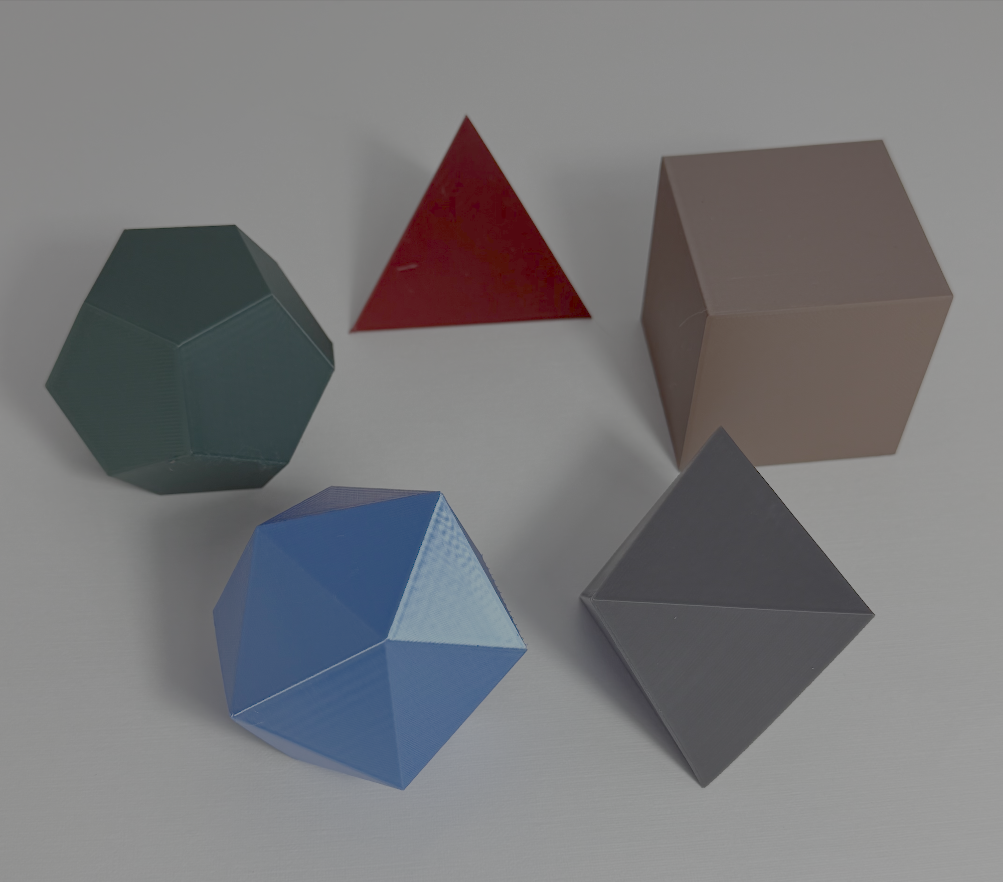 Este Kit contiene las piezas de los sólidos platónicos: Tetraedro, Hexaedro, Octaedro, Icosaedro y Dodecaedro, además de sus fichas.